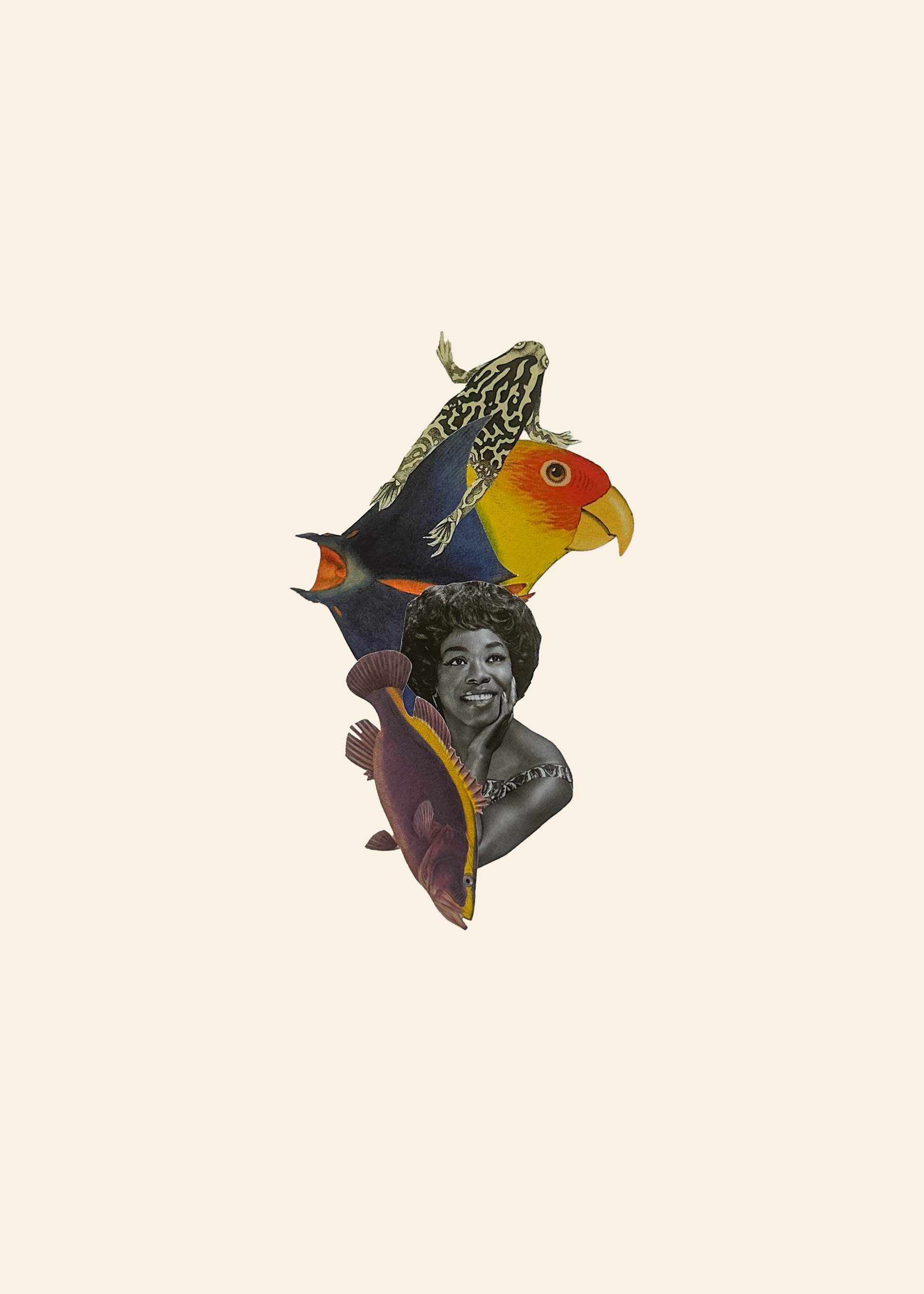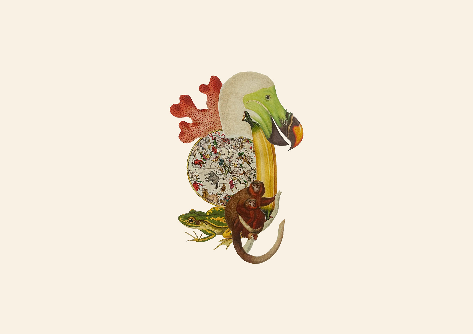 'This series, 'An Impossible Kingdom', is a journey into a world that exists just beyond the veil of our own. By grafting vintage botanical illustrations onto and into the forms of animals, these collages create a new, hybrid mythology. Here, flora and fauna are not separate entities but a single, breathing ecosystem of memory and dream.